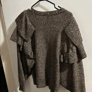 Solid Brown Ruffled Knit Sweater