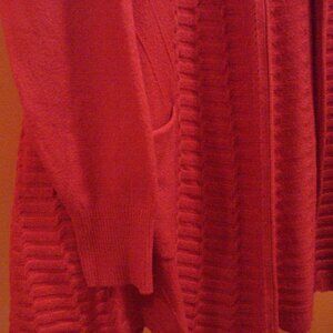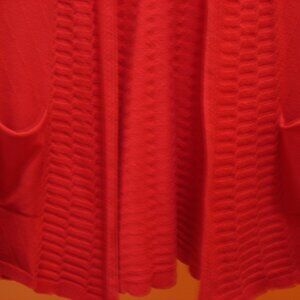 Solid Cable Knit Red Cardigan. Casual Open Front Long Sleeve. 2 Side Pockets