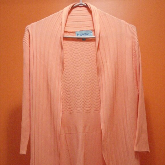 Solid Open Front Cardigan. Casual. Mid-Thigh. 3-Quarter Long Sleeve