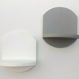 Set of 2 wall shelves, sconce style. Simple, stylish shelves that can be used in pretty much every room of your home or office. Perfect for kids rooms, bedroom, bathroom, kitchen, playroom, office, etc. Can display your favorite items and collectables beautifully. Size of the shelf is 10 3/4 in high by 9 inches wide by 6 in deep. The actual display area is 9 in wide by 5 3/4 in deep. Natural wood shelves painted in either white or grey.