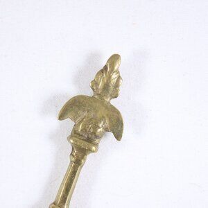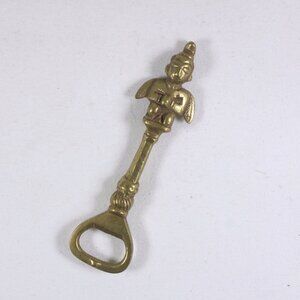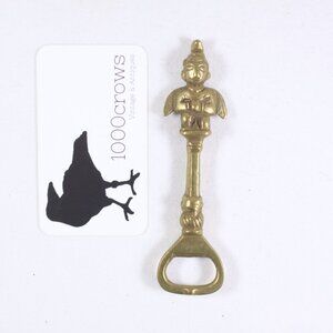 A solid brass beer or soda bottle opener, topped with what looks like an Inca / Mayan angel figure. Delightfully naive!