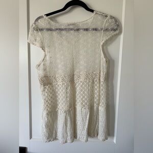 Chic cream lace top with floral design. Perfect for elegant occasions.