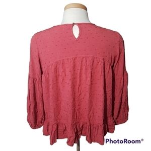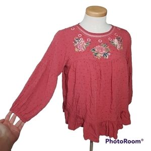 Solitaire Embroidered Swiss Dot Long Sleeved Blouse With Ruffle Hem