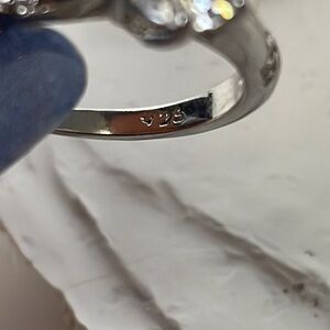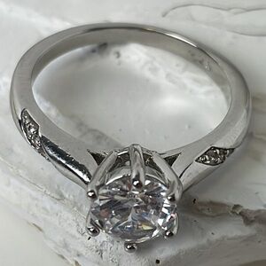 Solitaire Large Size Crystal & Small Crystals On Sides set in Sterling