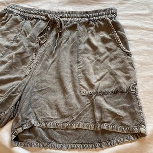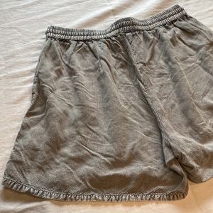 Like new condition Size small Grey silver mix color Waist 28” plus waist band Inseam 4.5” Rise to waist 10”