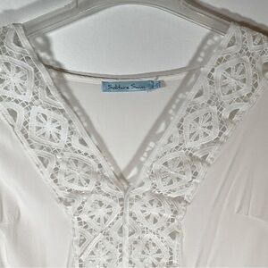 Solitaire Swim Women’s Lace Coverup Blouse Top Boho White Cream Size L