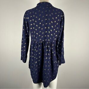 Solitaire Womens Blue Long Sleeve Collared Leaf Button-Up Tunic Top Size S