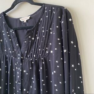 This super cute Metallic star print Blouse is perfect to dress up or down! The print is soooo cute.