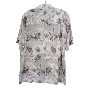 Solitude Mens M Hawaiian Shirt Washable Silk Sage Green Brown Leaf Island Resort