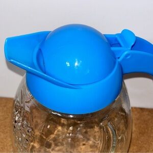 Enhance your kitchen with this stylish blue glass pitcher. Perfect for serving beverages with ease and elegance.