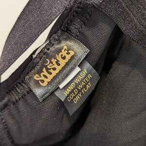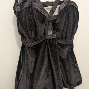 Velvet harness bodysuit by Solstice Intimates. Very high cut (over the hips), handmade in the United-States, size XXL. Hand wash in cold water, lay flat to dry. 90% Poly, 10% Spandex. Some signs of wear.