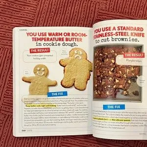 AI description Explore 209 creative solutions for kitchen mishaps with the guide. Featuring a charming brown gingerbread design, this book is a must-have for culinary enthusiasts.
