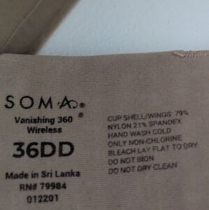 Soma wireless bra with seamless design. Soft and comfortable fit. Worn twice and never reached for it.