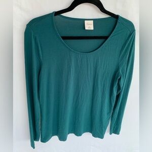 Beautiful blouse, long sleeves , round neck, green, light and comfy. In very good condition, no flaws.