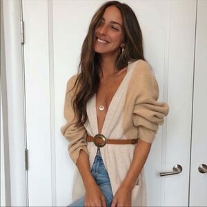 The sweater has slouchy sleeves and an open front that you can wear as-is or keep closed with a trendy waist belt. Two front patch pockets offer extra storage for your phone or for simply keeping your hands warm.