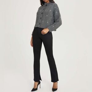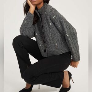 Our Cableknit Cardigan got an upgrade. Meet the Embellished Cableknit Cardigan in Charcoal. Designed with a mock neck style, boxy fit, and sequin embellishment detail, this everyday sweater is made for the transitional season. Whether you're bundling up for chilly spring mornings or heading out to dinner, conquer the day in style with this cozy cardigan.