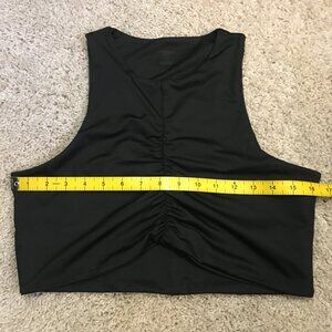Very good preowned condition black, ruched athletic crop top/bra by Sommer Ray. Simple, comfortable and stylish.