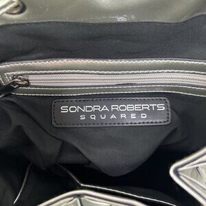 Sondra Roberts Squared Backpack Silver Metallic Geometric Pattern School Bag