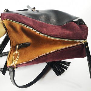 Sondra Roberts Squared New York Expandable Handbag Black Burgundy Green Gold