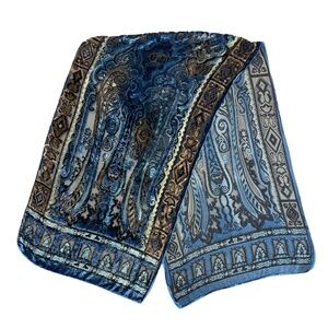 Sonia Rykiel Blue Velvet Burnout Paisley Scarf 🇫🇷 | Silk Blend Evening Shawl