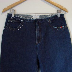 Sonia Rykiel Paris Designer Ankle Cropped Jeans Wide Leg High Rise Frayed Waist Silver Studs ~ Size European 40 or 31 waist (see measurements listed as a 31) ~ 100% Cotton