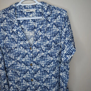Sonoma Blue & White Button Front Tie Waist Short Sleeve Dress Women Large