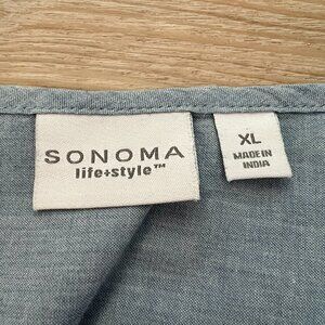 Embrace a unique bohemian vibe with this stunning weathered denim sleeveless top from Sonoma Life+Style! Size XL. 100% cotton This piece features a beautiful, vintage-inspired blue washed denim, perfect for adding a touch of laid-back style to your wardrobe.