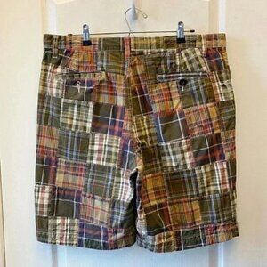 Sonoma Men’s Shorts Flat Front Chino Shorts Cotton Tan Green Blue Plaid Size 36