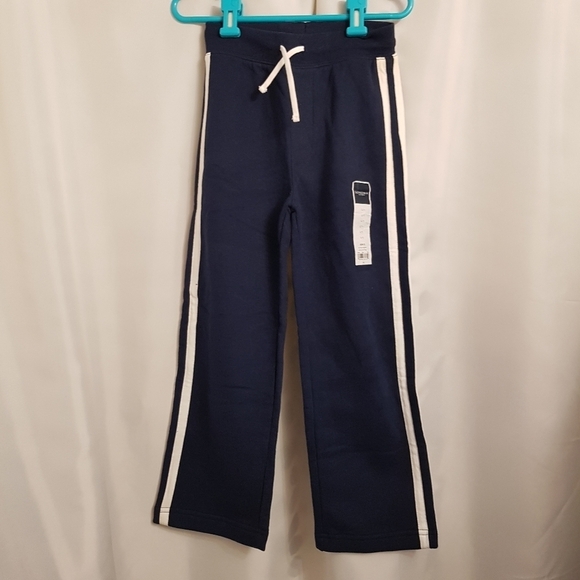 NWT Sonoma joggers boys size 7, blue with white stripes down the legs, soft waist, functional drawstring, no pockets, no defects