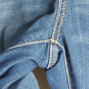 No signs of wear. These jeans are a gorgeous soft mid weight denim.
