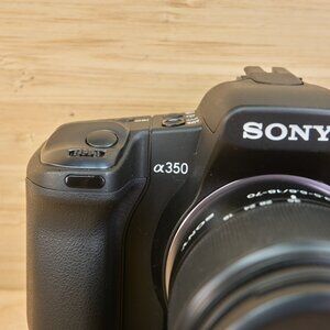 The Sony Alpha A350 is a 14.2MP digital SLR camera with a DT 18-70mm f/3.5-5.6 zoom lens, delivering sharp image quality and reliable performance.