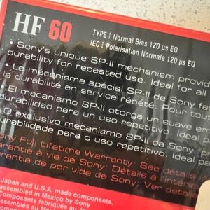 Sony Cassette Tapes 60 Min HF Normal Bias Type 1 Pack of 6 New Sealed