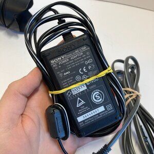 Lot includes camera with Carl Zeiss Lens + cap + shield + charger/battery + Well used bag + manual. Camera is tested and working. No memory card included. Camera has general use marks/scuffs/dust, overall good condition. Lens shield appears to of had a crack that has been glued. Camera bag is well worn/damaged.