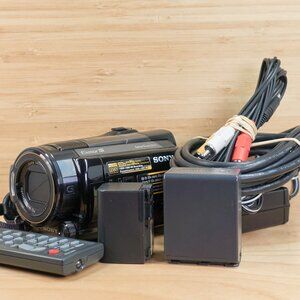 The Sony HDR-XR500V is a premium High Definition Handycam camcorder featuring a built-in 120GB hard drive, Sony G Lens, and excellent low-light performance. Made in Japan, it delivers sharp HD video and is perfect for travel, events, or professional use.