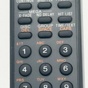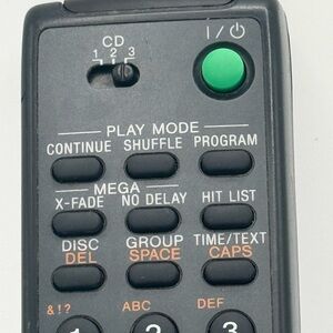 Compact Sony remote for CD players. Easy-to-use buttons. Sleek design.