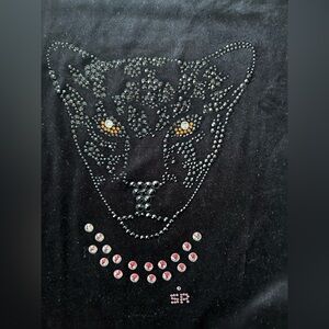 This stunning vintage Sonia Rykiel sweatshirt from the 2000s is a true statement piece! Purchased in France. Crafted in luxurious black velvet, it features an exquisite panther's face embroidered with shimmering rhinestones, adding a touch of bold elegance to your wardrobe. The straight-cut silhouette and long sleeves offer a relaxed yet stylish fit, making it perfect for both casual and elevated looks. A rare find for collectors and fashion lovers alike. Don’t miss the chance to own a piece of Sonia Rykiel’s iconic design.