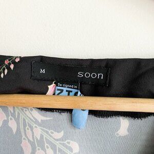This beautiful Soon Maternity dress features a stunning black and pink floral pattern that will make you stand out in any crowd.