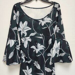 Soon Women's Dark Green Floral Midi Maternity Dress W/Bell Sleeves Size M