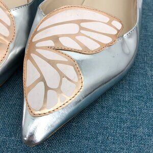 Sophia Webster Bibi Butterfly Silver Metallic Patent-leather Point-toe Flats 6.5