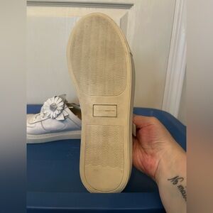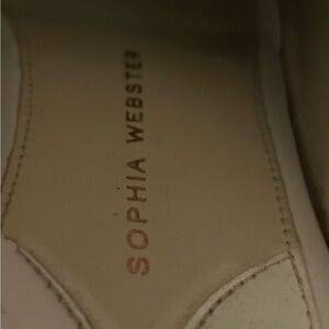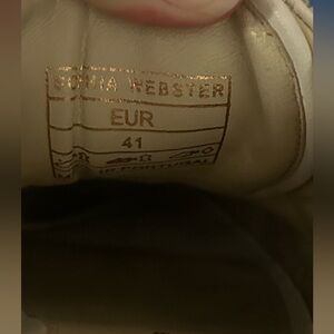 These Sophia Webster sneakers offer both style and comfort. Crafted with leather, they provide a modern and versatile look suitable for various casual occasions. The decorative floral design add a touch of flair, making them an easy slip-on option for everyday wear. In good pre-owned condition - could use a clean but no damage. Size 41 = US 8.5. I am a size 8 and they are unfortunately a bit big on me. Gorgeous shoes! Thank you for looking!