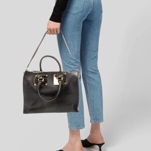Sophie Hulme Top Handle Bag Black Leather Gold-Tone Hardware