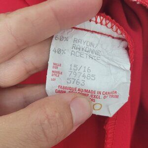 Vintage Sophisticate Women's Red Dry Clean Only Open Front Black & Gold Detailed Cuff Buttons Red Retro Cropped Blazer Shoulder Pads Jacket Plus Size 15/16