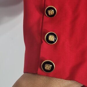 Vintage, Sophisticate, Women's, Red, Dry Clean Only, Open Front, Black & Gold, Detailed, Cuff, Buttons, Red, Retro, Cropped, Blazer, Jacket, Plus Size, 15/16, Shoulder Pads,
