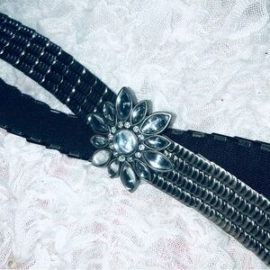 Sophisticated Black and Silver fish scale style. Bohemian style belt with bling