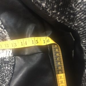 Never Worn, Brand New from Venus. The only disappointment was the size, otherwise there is no way I would post this Beauty! Love, LOVE, love everything about it from the fabric to the collar. Mixed medium; part woven, part vegan leather. Ordered this in Small, selling it as a Medium. The cut is lovely but far from dimensions that would fit me properly... My loss is YOUR gain! Ordered from Venus but with exchange, duty and cost of shipping; it's hardly worth returning. Colours are black (leather area & fur collar) with tones of grey, flecks of white in the woven fabric. Well made, fully lined. Please review the dimensions to be certain, delighted to answer any questions. Smoke free, pet free (minus princess Boo-Boo who is not allowed in the closet) immaculate home environment with love.