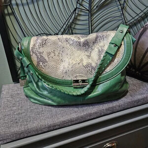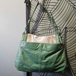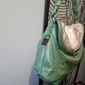 Soprano | Gorgeous Green Slouchy Leather Bags Iridescent Snake Pattern - Rare!