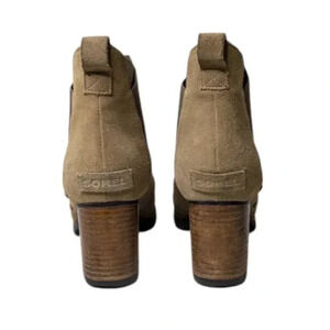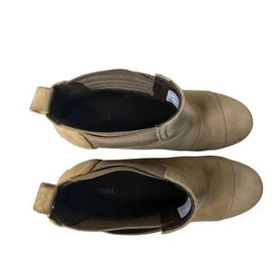 Sorel Addington Chelsea Suede Womens Block Heel Boot Tan Beach/Cordovan Size 9