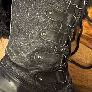 Sorel Black Winter Boots with Fur Trim used once size 10 in like new condition
