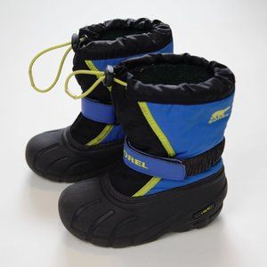 These are black/super blue Sorel Children's Flurry boots for your little one! They were worn for about 4 months last winter, and are in great preowned condition. Please see all photos and zoom in, as needed.
