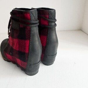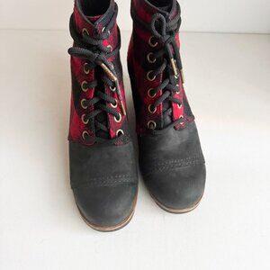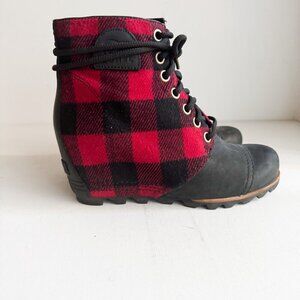 Sorel Buffalo Plaid Wool Leather Wedge Boots 9.5